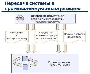 В ходе опытной эксплуатации предложенные решения проверяются на практике. Если необходимо, вносятся изменения во временные положения. После отработки всех участков документооборота подготавливается постоянная нормативная база. Это обычно инструкция по делопроизводству, стандарты организации, изменения в должностных инструкциях, правовые акты.